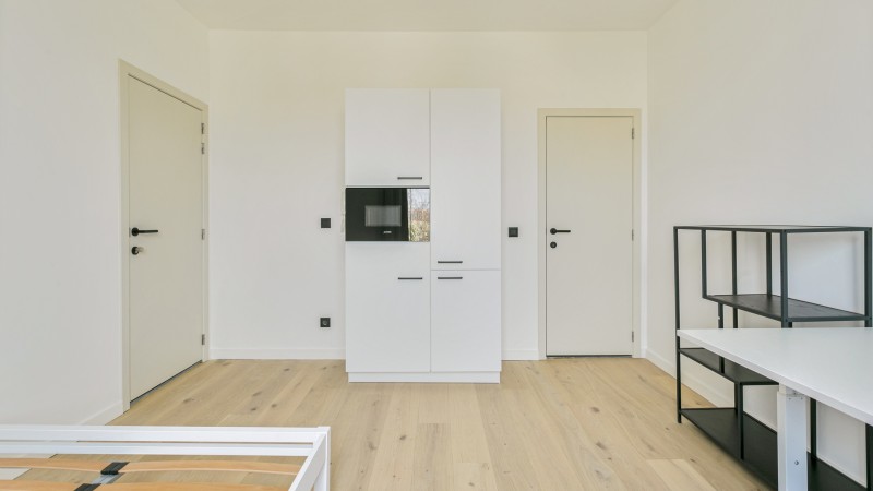 This beautifully renovated student house is located in the heart of Mechelen and is 1.5 km from Thomas More University of Applied Sciences. The building consists of 7 rooms/studios and has a garden. Each room has a double bed, desk, cupboard and fridge (with freezer) and is available from September 10, 2025.